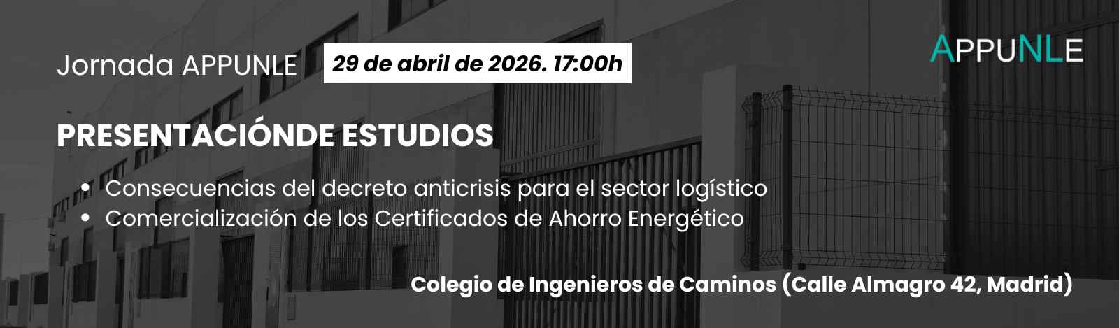 APPUNLE celebrará el 29 de abril una jornada sobre el impacto de los nuevos desarrollos normativos del sector eléctrico en la logística